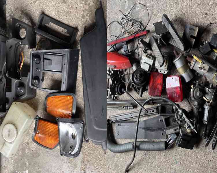Prodám na ŠKODA 105 - 120 - 125 tyto díly : cívky, relé alternátoru, relé zadního skla, rozdělovače, vodní a benzínová pumpa, pedály plynu, pojezdy sedačky, kulisa řazení na 4kvalt, spínač na světla Š130, vnitřní lampičky, sluneční clony, plasty volantové tyče, středový plast palubní desky s vypínači, přední blikače M, nádobka ostřikovačů a ostatní vše podle fotek. Jedná se o prodej zbytků z garáže a za celý tento soubor dílů je cena 1500.-Kč. Osobní vyzvednutí nejlépe na Praze 5 nebo dohoda t:776*064*641