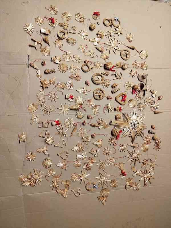 Nabízím k prodeji slaměné vánoční ozdoby na stromek foto vše za 500 Kč.