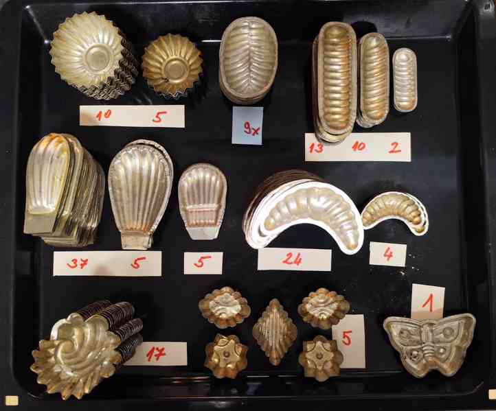 Prodám 147 ks staré plechové formičky na vánoční cukroví, různé tvary, nejraději v celku, viz foto. Cena 240,-Kč.
