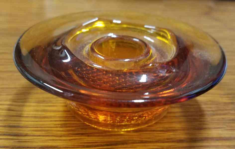 Prodám skleněný svícen (candlestick) z lisovaného skla od Václava Hanuše, rok 1966, Jablonecké sklárny - Desná, perfektní stav, bez oťuků a škrábanců, výška 3,5 cm, průměr 9,5 cm. Osobní předání na Praze 3, nebo zaslání přes Zásilkovnu či Balíkovnu. Volejte 770 630 523, nebo pište na morgiana007@gmail.com