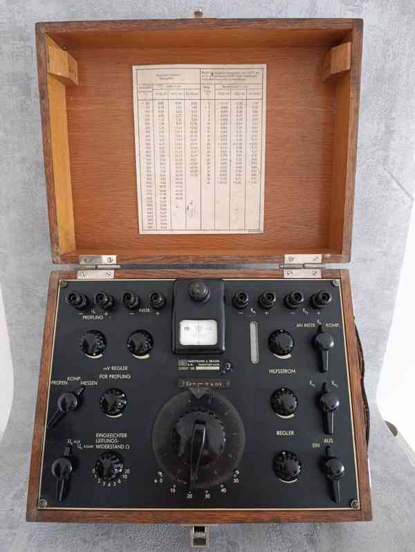 Starý vzhledově velice zachovalý německý přístroj v dřevěné bedně asi nějaký kompenzátor.