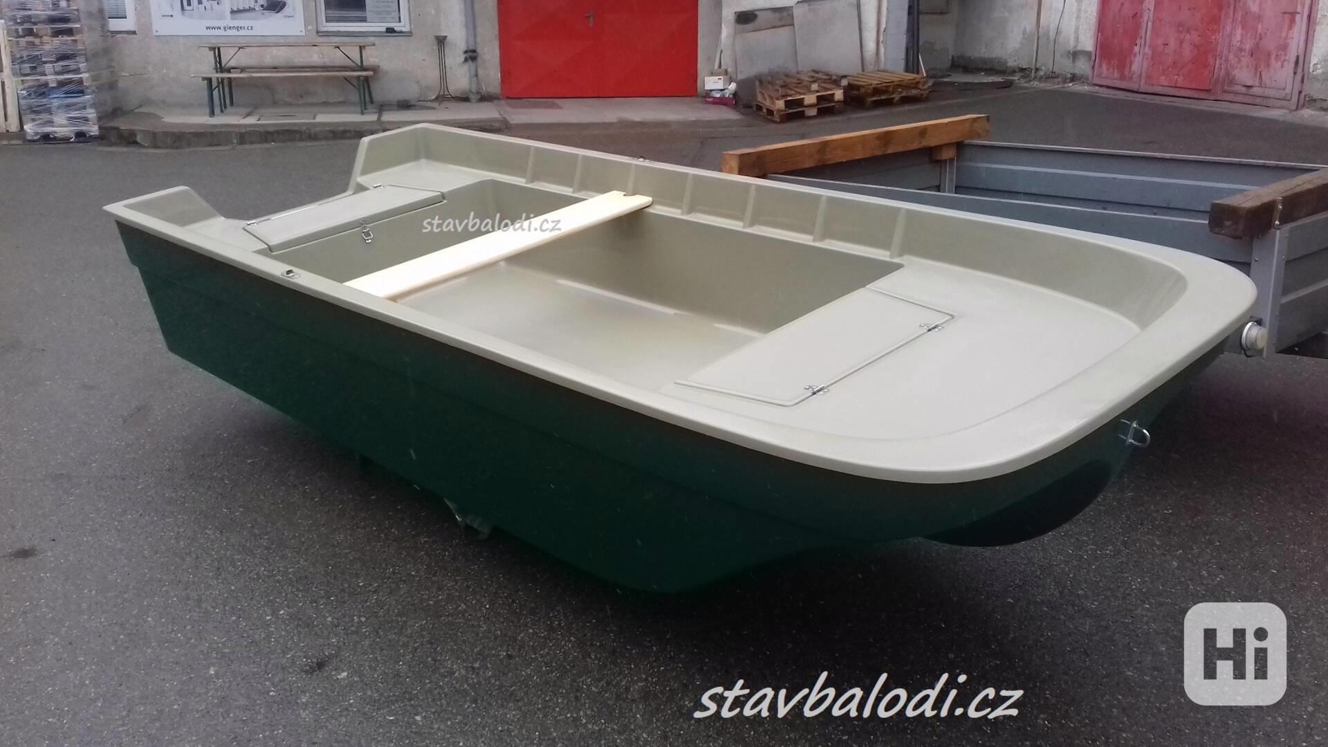 Prostorný člun se širokým trimaránovým trupem, který zajišťuje vysokou stabilitu. Člun je laminátový, nový, dvouplášťový, je vybaven dvěma uzamykatelnými schránkami pro uložení věcí, přestavitelnou lavičkou a je možné jej používat s různými typy pohonu – závěsným motorem (spalovacím nebo elektromotorem) nebo vesly. Kování je z nere-zové oceli (úchyty pro vesla, panty, oko na přídi). Člun je stabilní a ideální pro lov sumců nebo rodinné výlety.