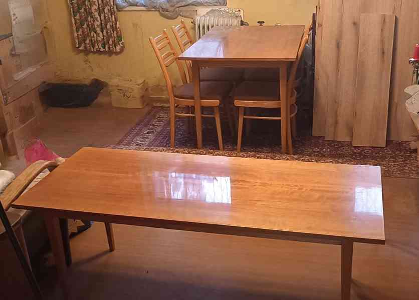 Prodám starý jídelní stůl se čtyřmi židlemi v perfektním stavu + nižší konferenční stolek.