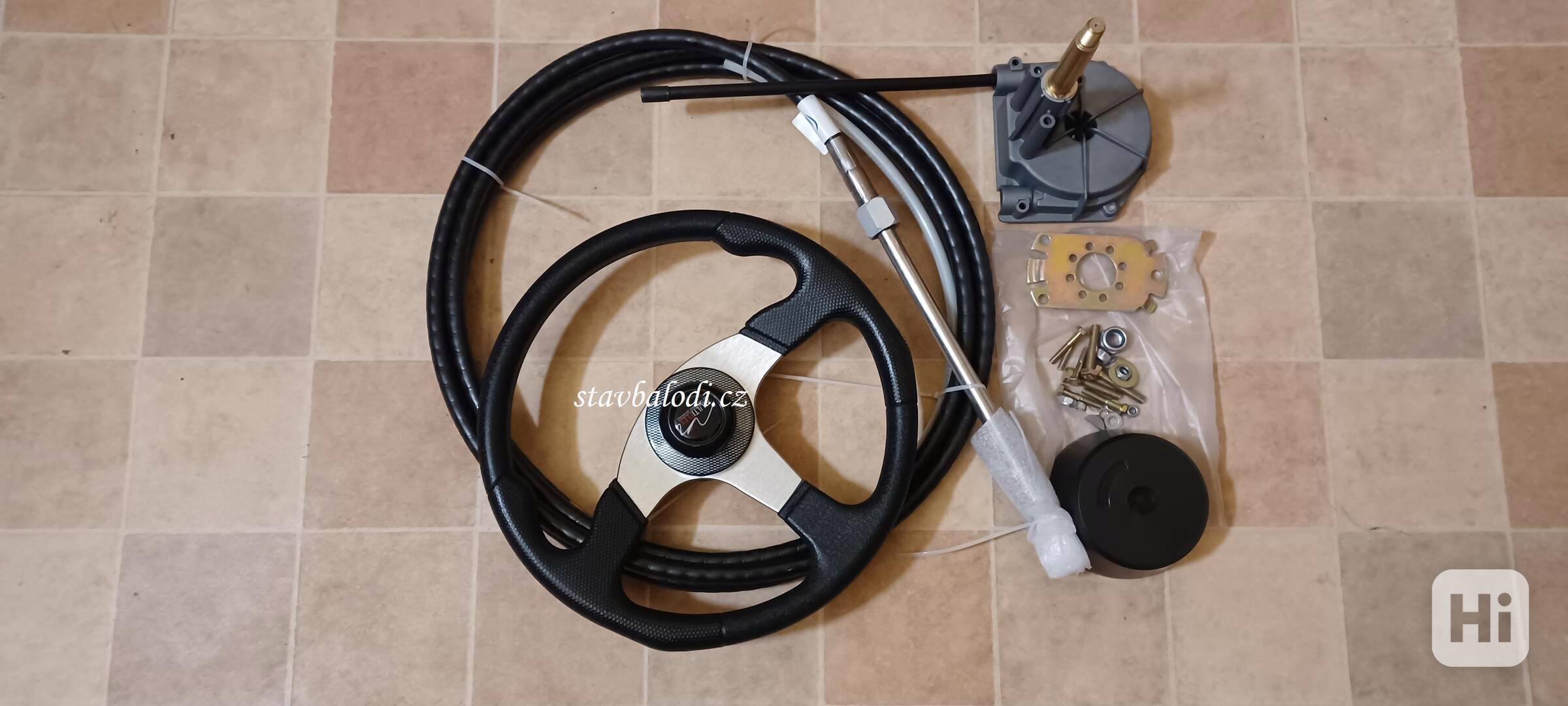 Dálkové, nové řízení do motorových člunů, lodí - volant, převodovka, bovden, sada. Cena 5 800,-